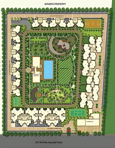 Forest-inspired landscaping, large open greens, and eco-friendly environment for healthy living.